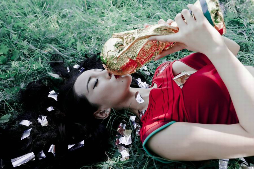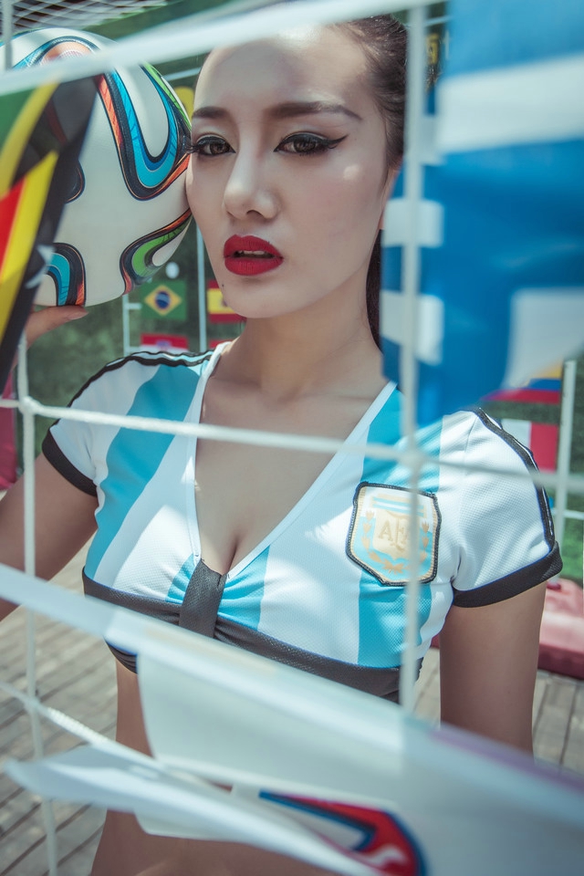 球场魅惑酥胸半露性感诱惑足球宝贝火辣强悍写真